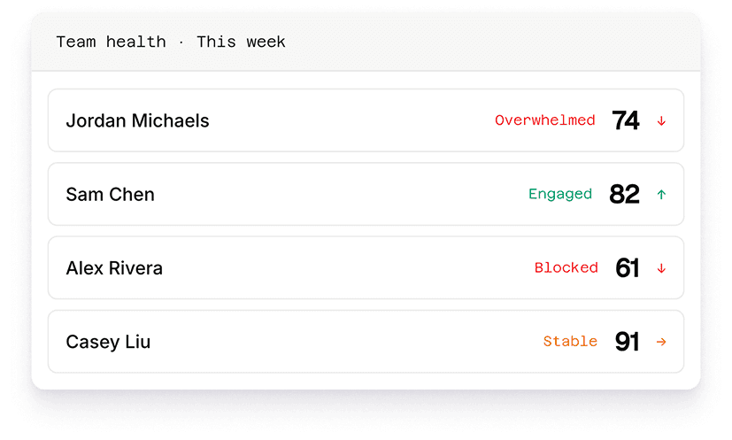A behavioural shift in engagement or tone. Spotted early, acted on fast.